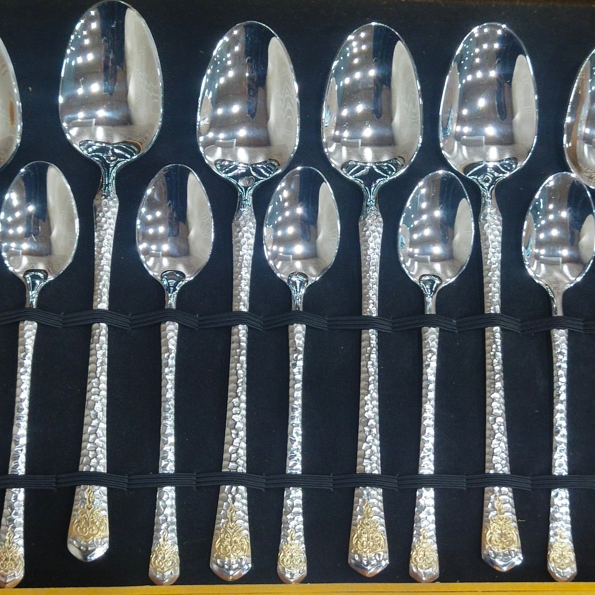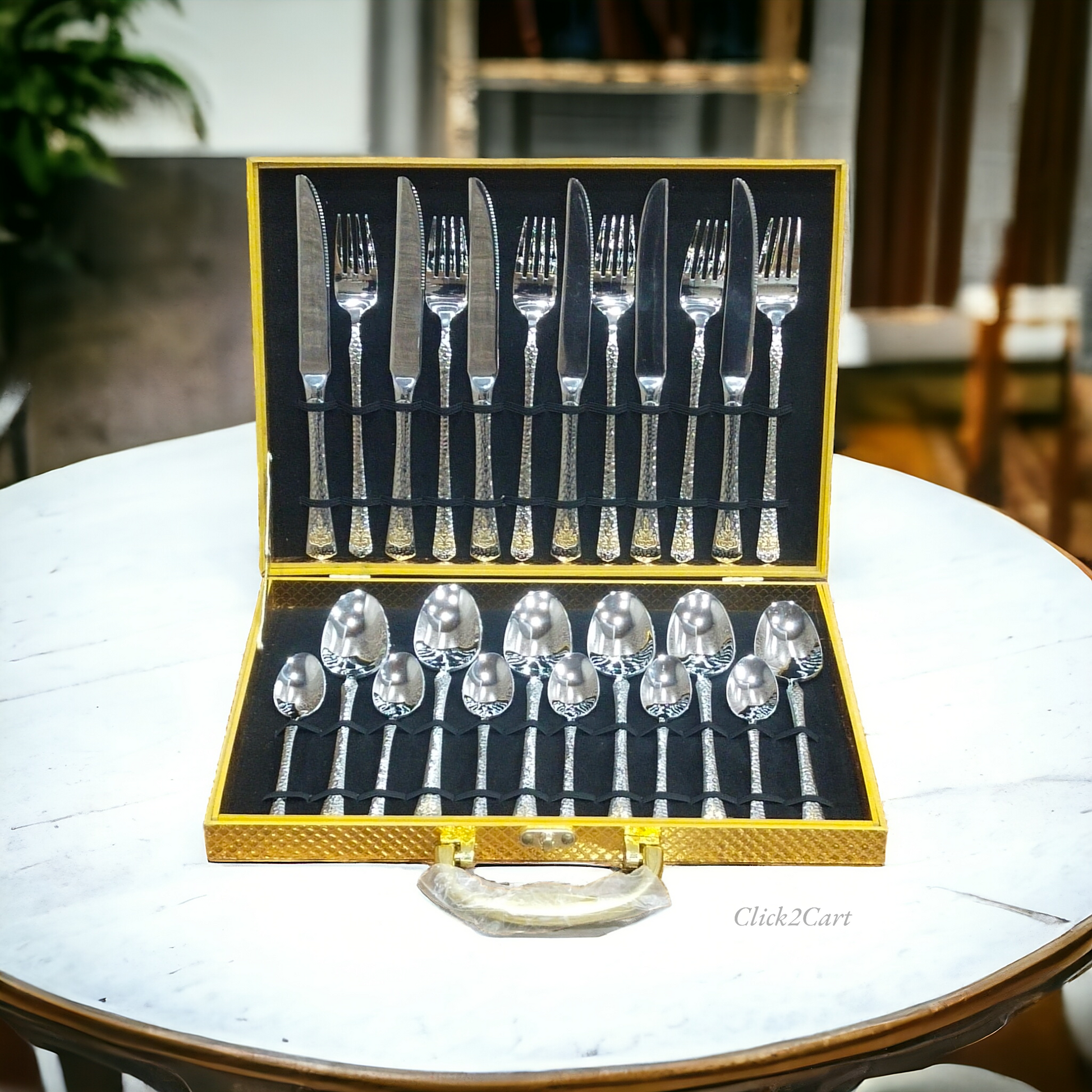 Expertly crafted with 24 pieces of sleek and modern silver cutlery, this set is perfect for any dining occasion. Made from high-quality materials, it offers a luxurious and elegant touch to your table setting. Enhance your dining experience with this timeless and functional cutlery set.