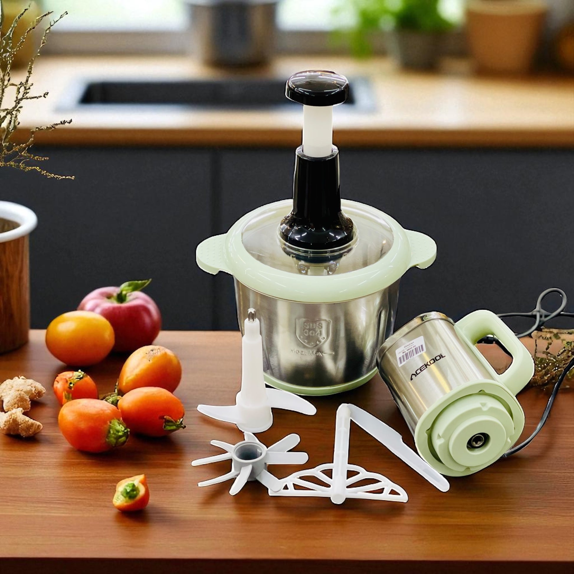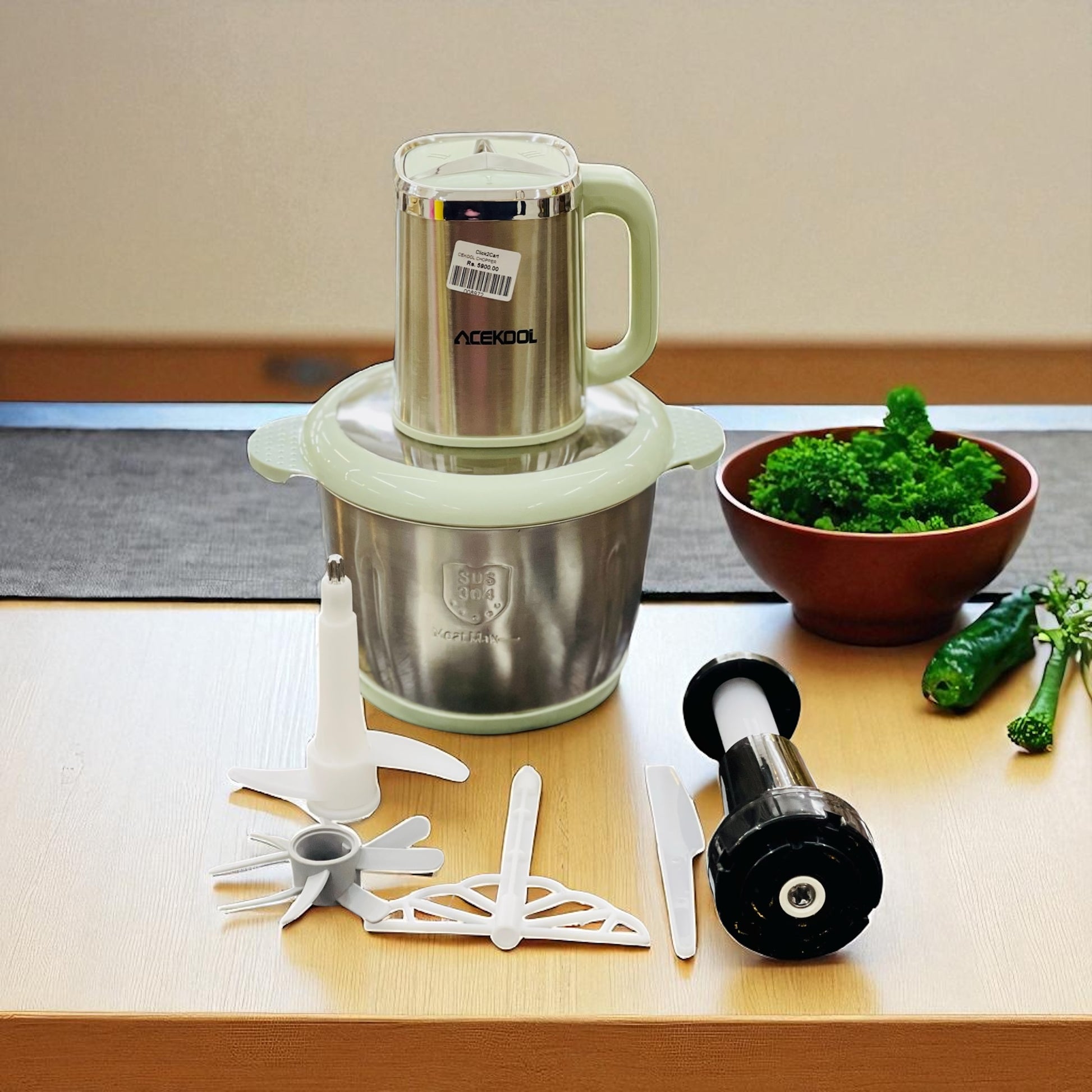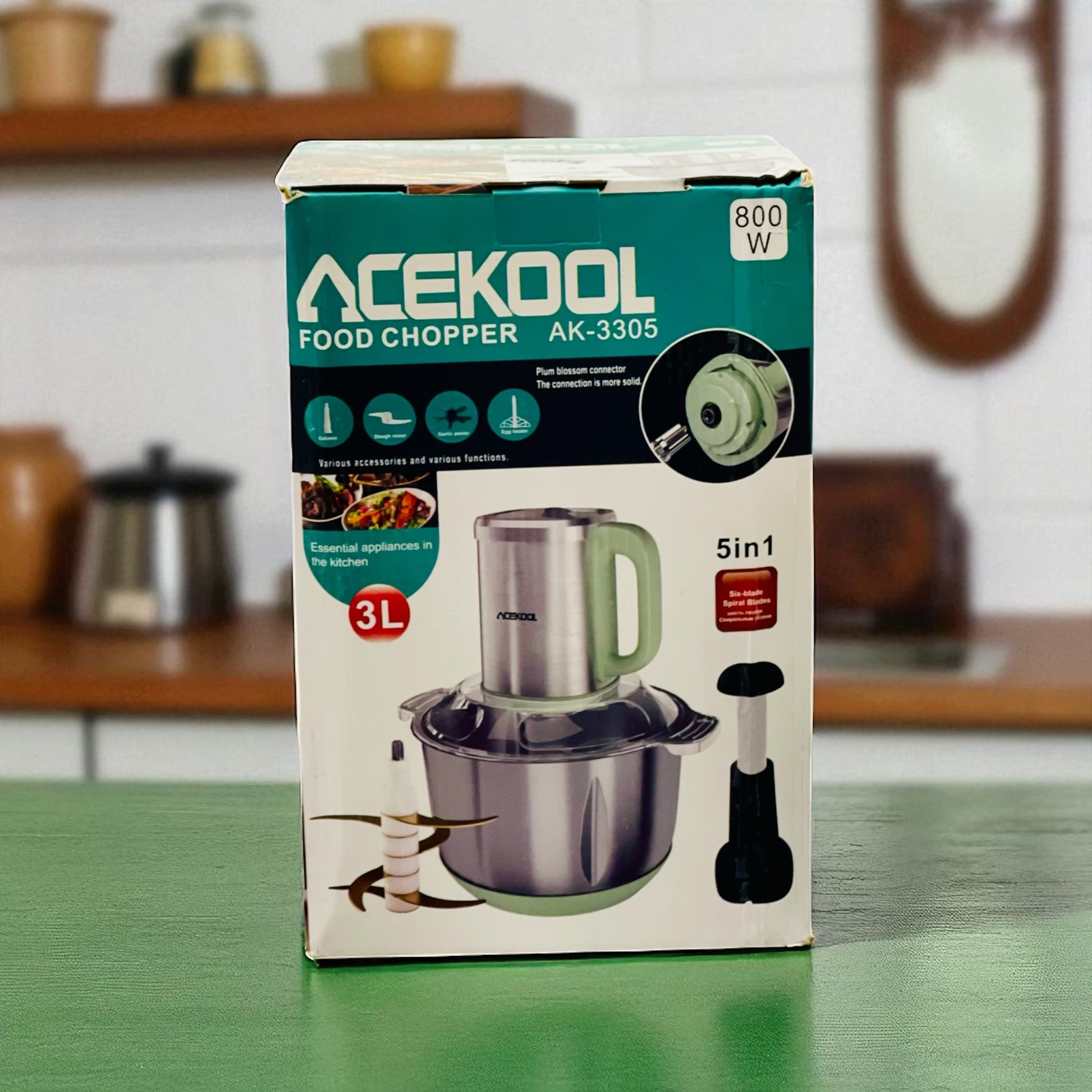 The Acekool Meat Chopper 3L (5in1) is a versatile kitchen appliance designed for precision and efficiency. With a 3-liter capacity, it handles large quantities effortlessly, while its 5-in-1 functionality streamlines multiple food preparation tasks. Expertly engineered for durability and performance, this chopper ensures uniform cutting and consistent results, making it ideal for both professional chefs and serious home cooks seeking reliable meat processing solutions.