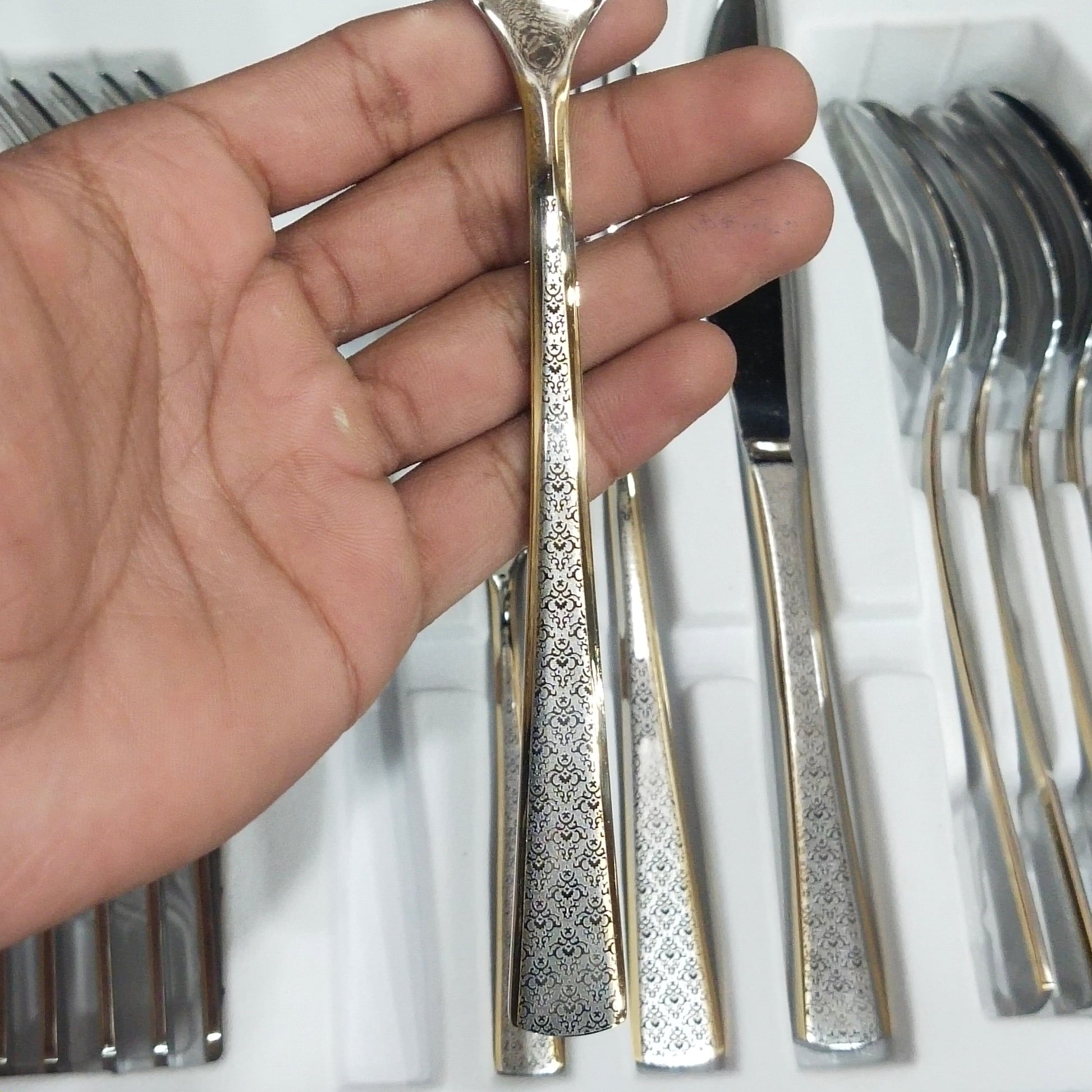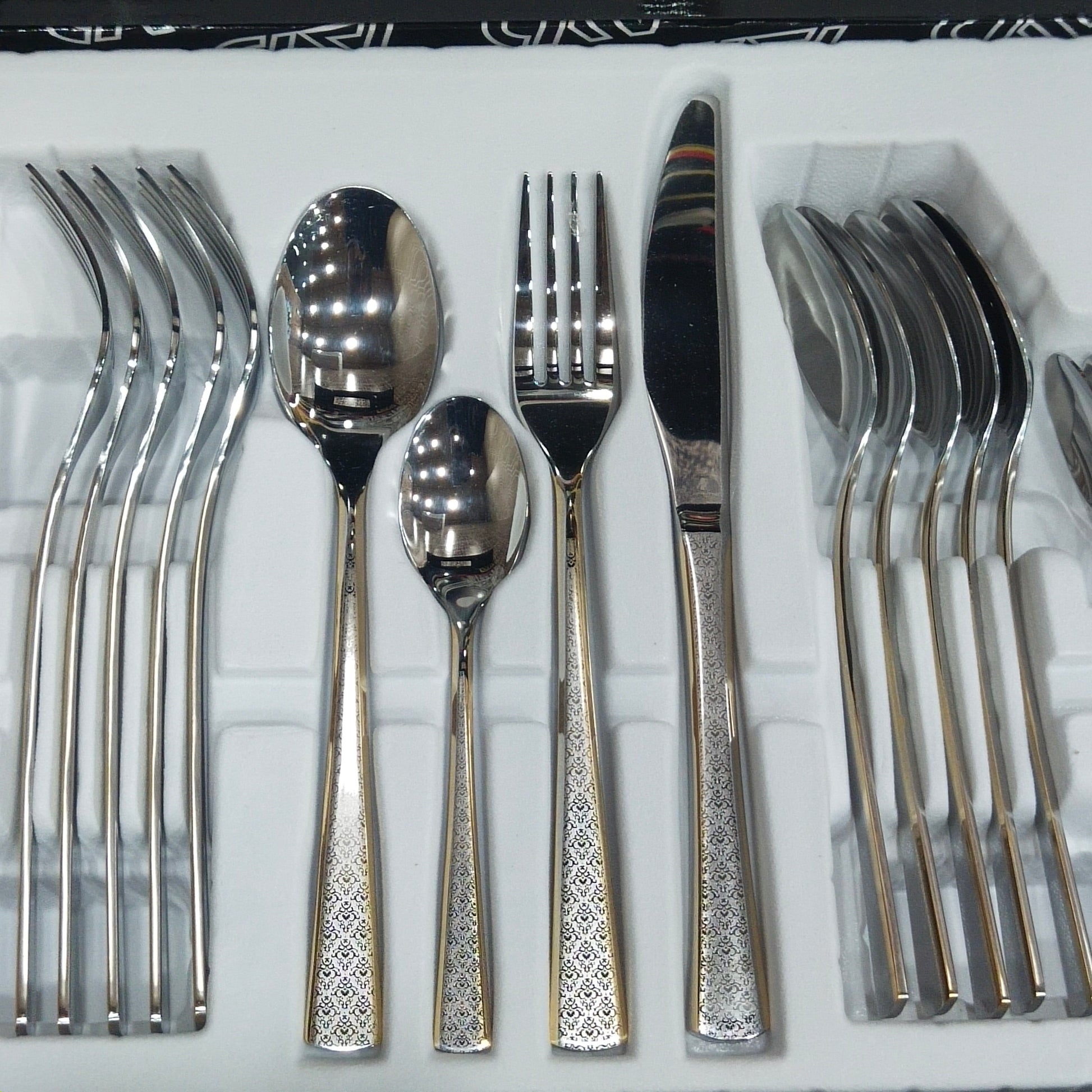 Crafted from high-quality stainless steel, the Ayd 24 Pcs Cutlery Set adds a touch of elegance to your dining experience. With 24 pieces including dinner forks, knives, and spoons, this set is perfect for any occasion. Enjoy the durability and sophistication of this silver cutlery set.