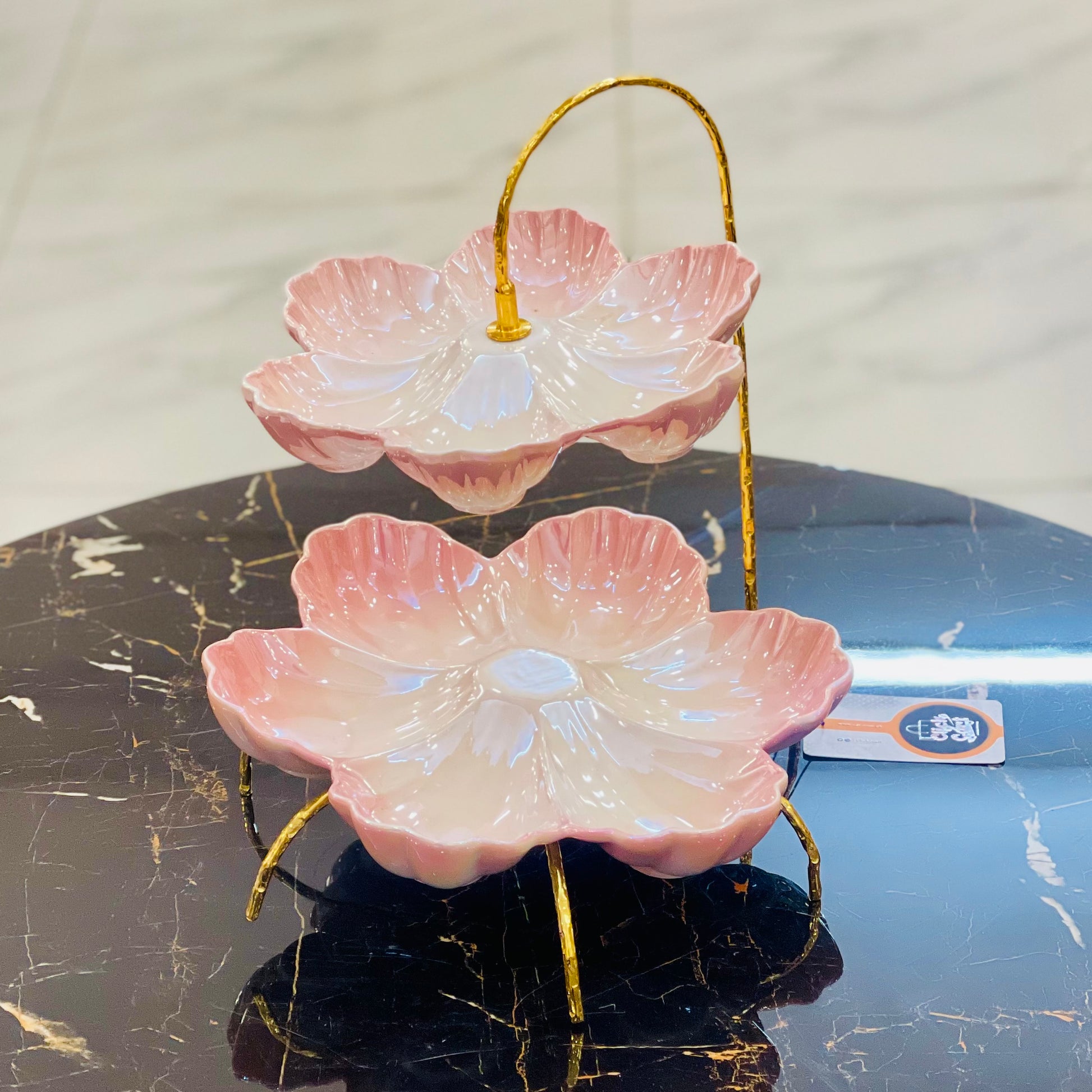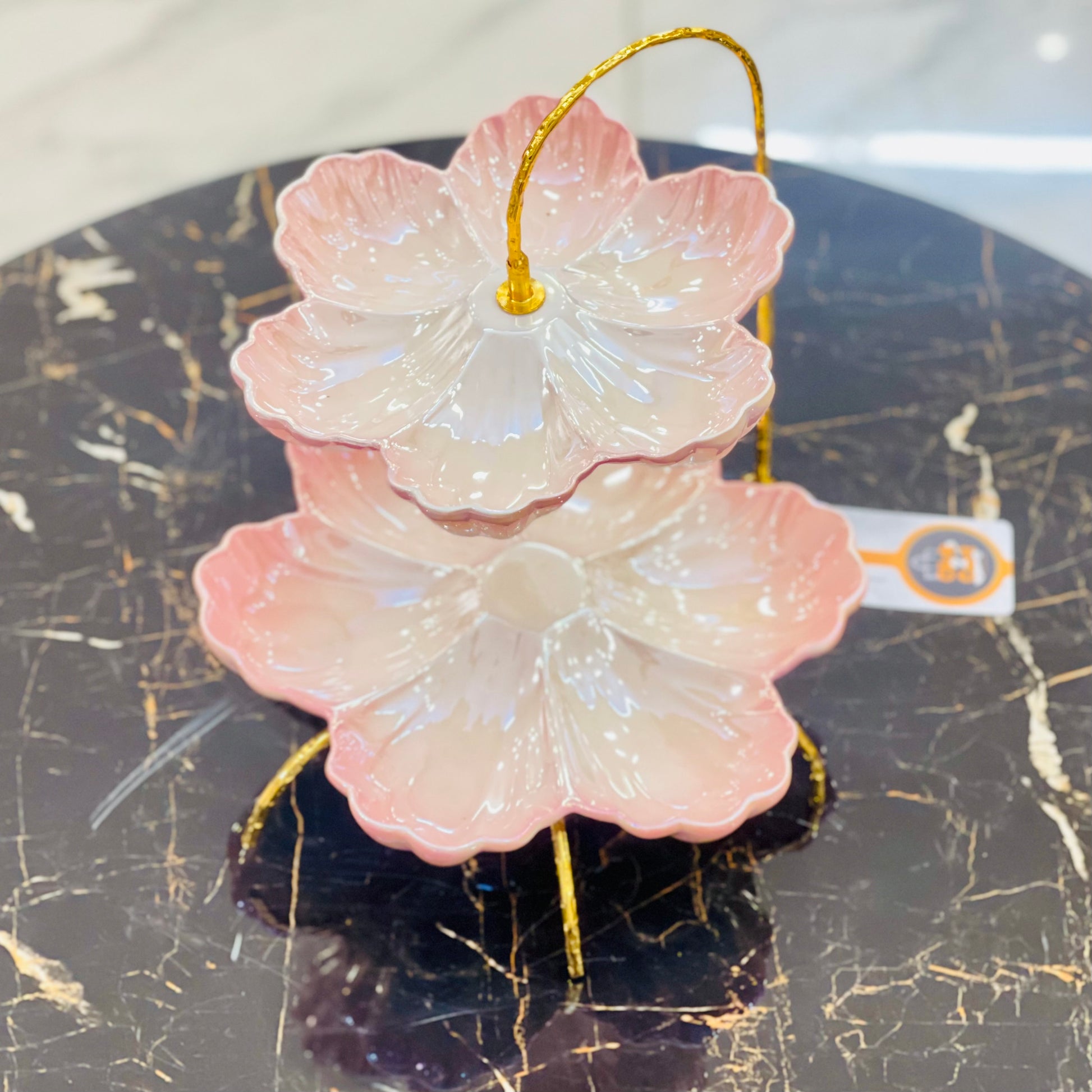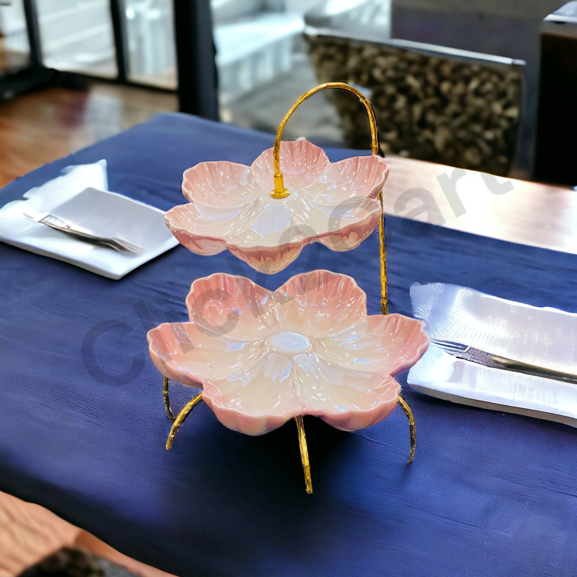 Increase efficiency with our Ceramic 2 Tier Serving Platter, perfect for organizing appetizers or desserts. Its sturdy ceramic material provides a sophisticated look while being easy to clean and maintain. Double your serving space and impress your guests with this convenient and elegant addition to your kitchen.