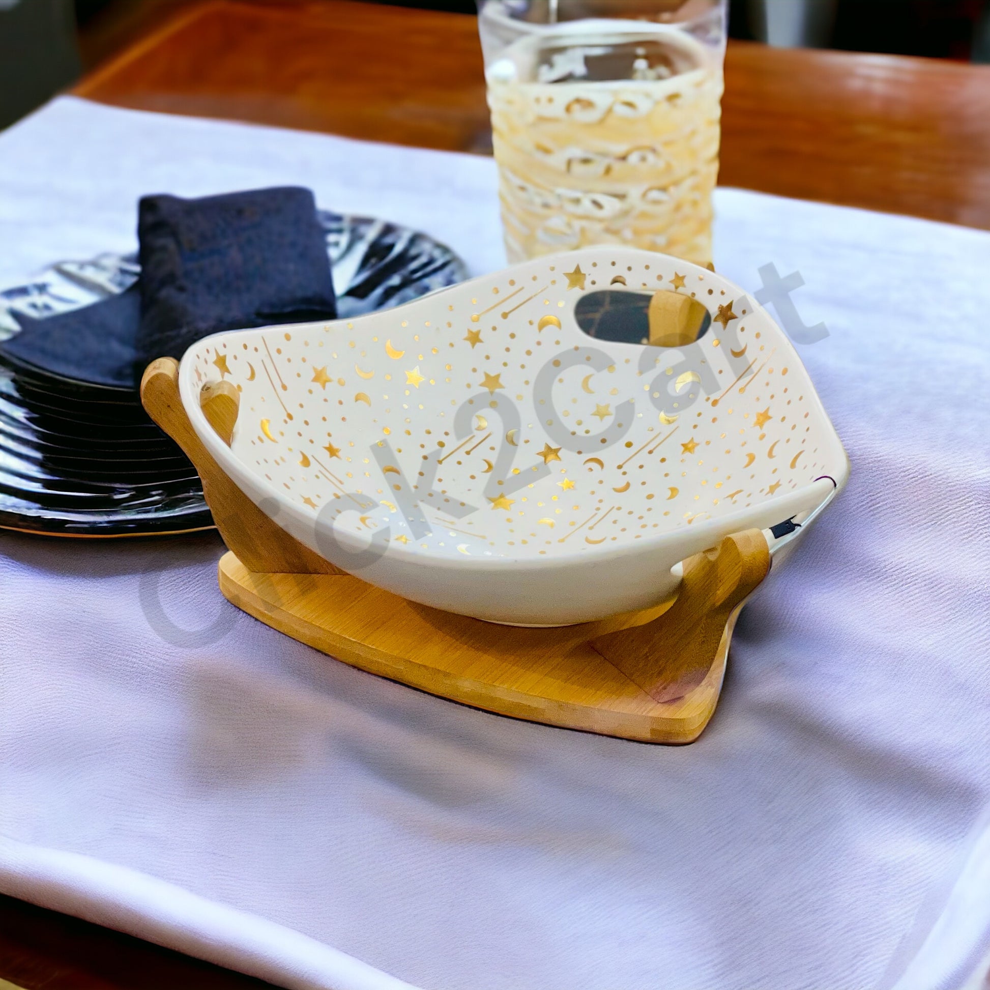 Expertly crafted with high-quality ceramic, this serving bowl is the perfect addition to your dinnerware collection. Its durable material ensures long-lasting use, while its sleek design adds a touch of elegance to any table setting. Elevate your dining experience with this versatile and functional bowl.
