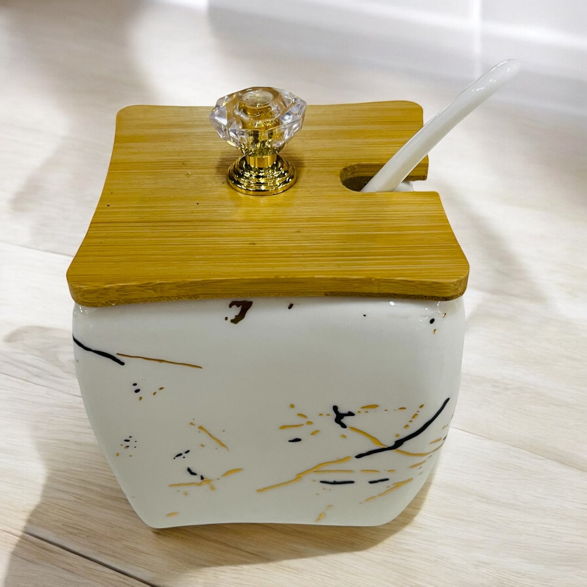 This Ceramic Sugar Pot is a stylish and functional addition to any kitchen. Made of durable ceramic, it keeps sugar fresh and easily accessible. With an elegant design, it adds a touch of sophistication to your pantry.