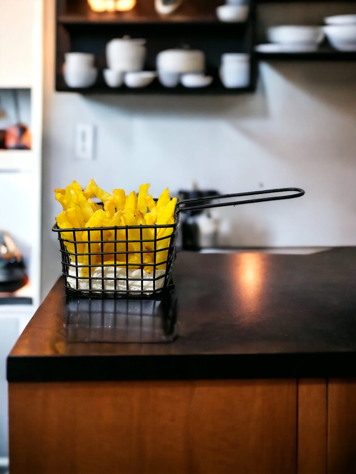 This French Fries Basket from is the perfect size for smaller portions. Keep your fries crisp and delicious with the durable steel construction. Ideal for serving up hot and crispy french fries.