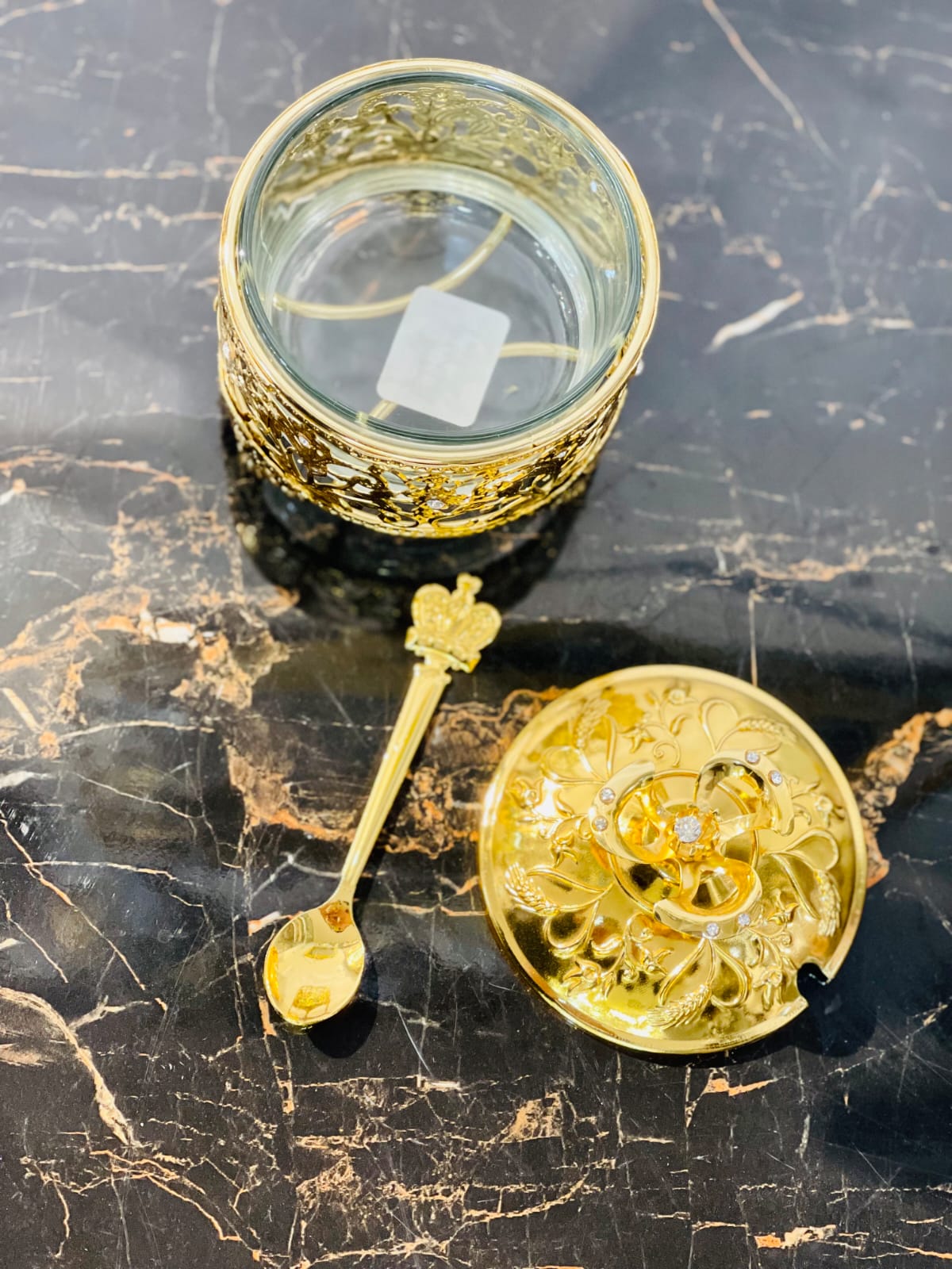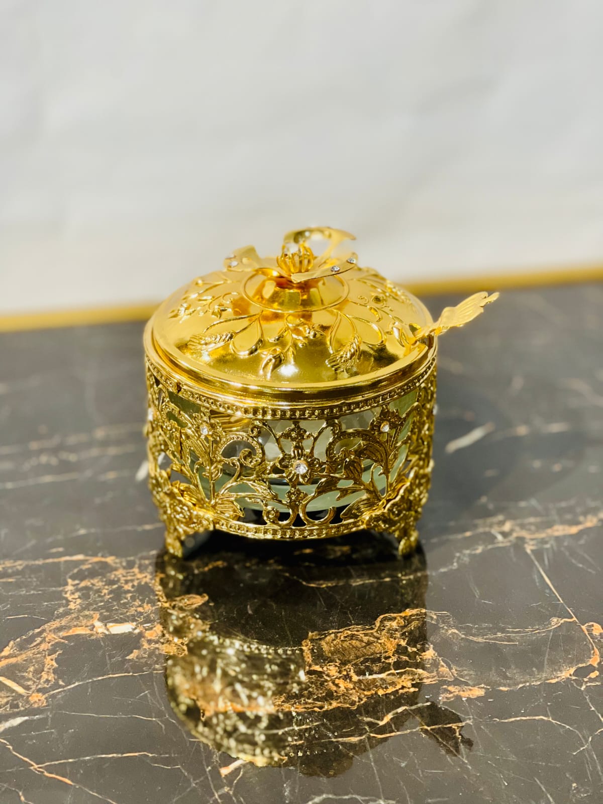 Golden Sugar Pot With Spoon