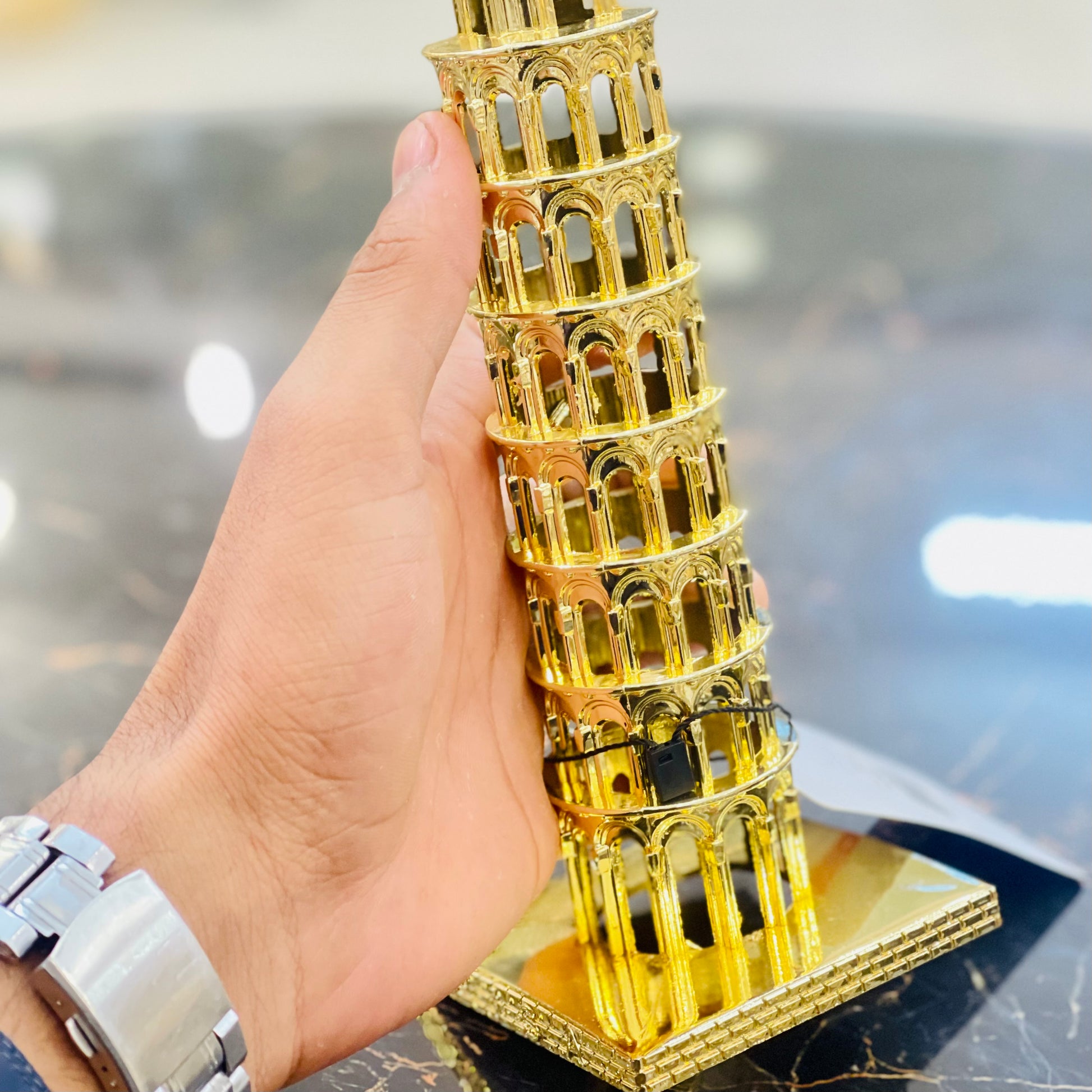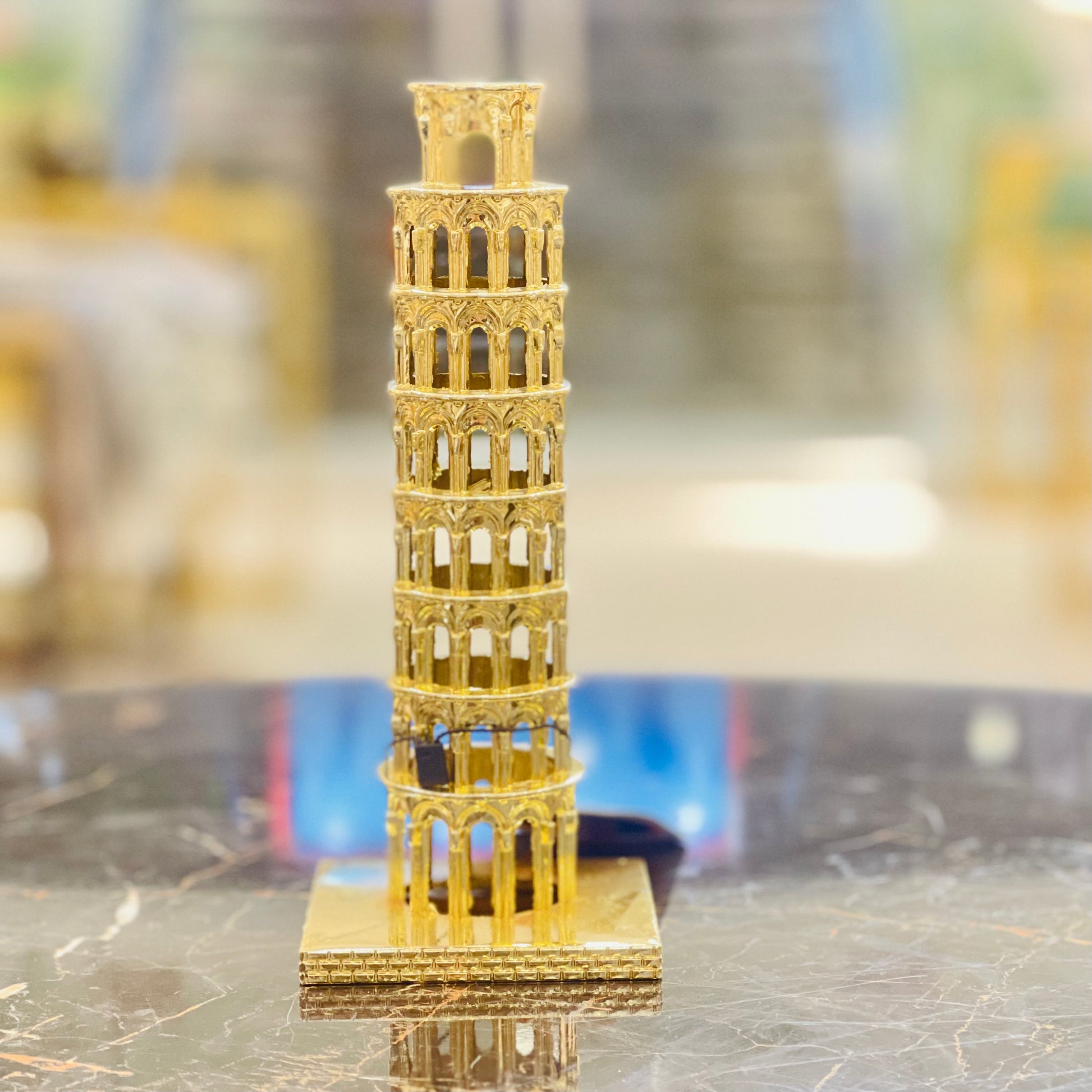 This metal Pisa Tower is crafted with a sturdy construction to provide reliable durability in any environment. With its robust metallic material, this tower is highly resistant to corrosion and rust, making it perfect for both indoor and outdoor use. Enjoy a Pisa Tower that lasts for years with this metal construction.