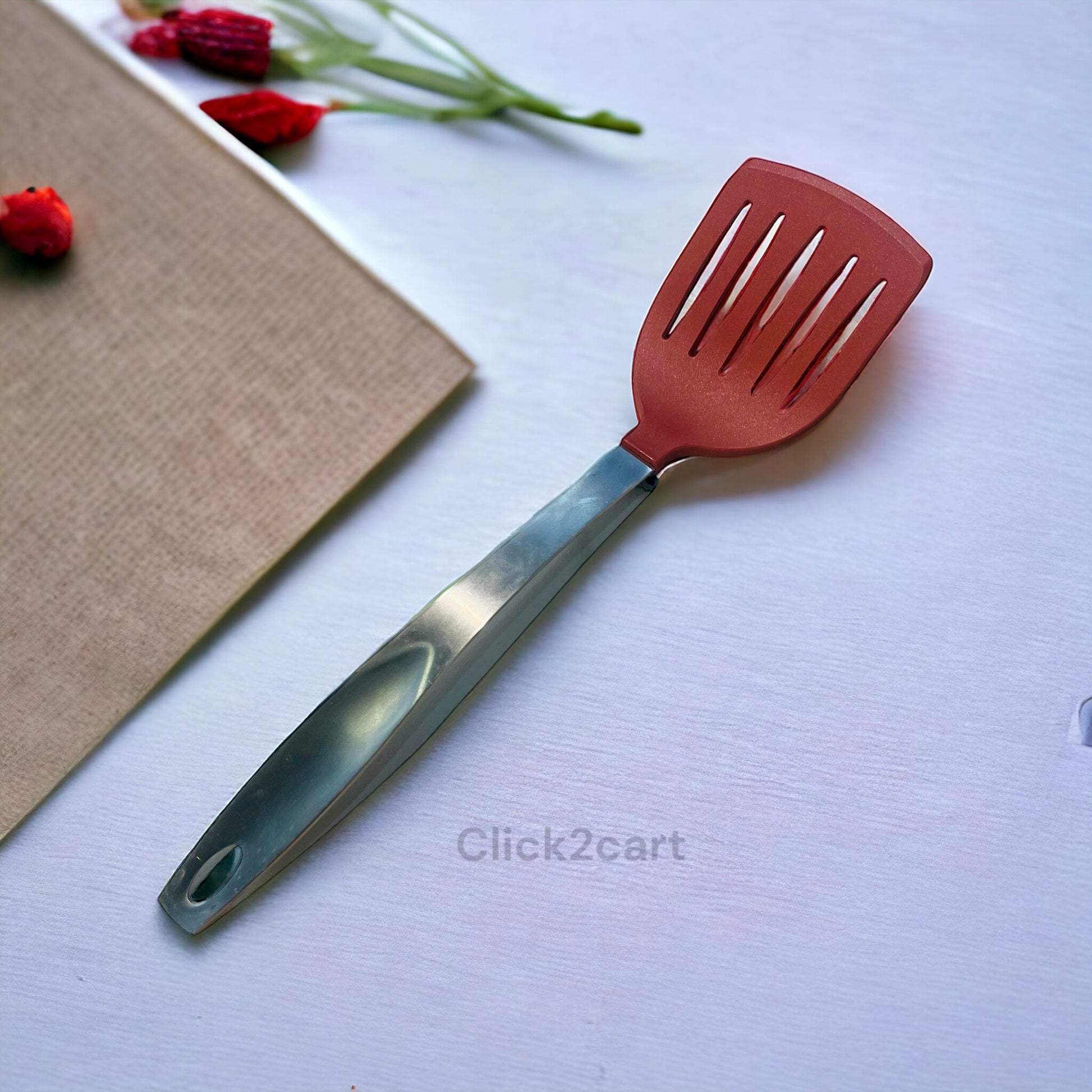 Crafted from durable silicone, this spotted pancake turner spatula offers a flexible, non-stick surface for easy flipping and serving. Its smooth edges and sturdy design make it perfect for delicate foods like pancakes and omelets. Upgrade your kitchen tools with this versatile spatula.