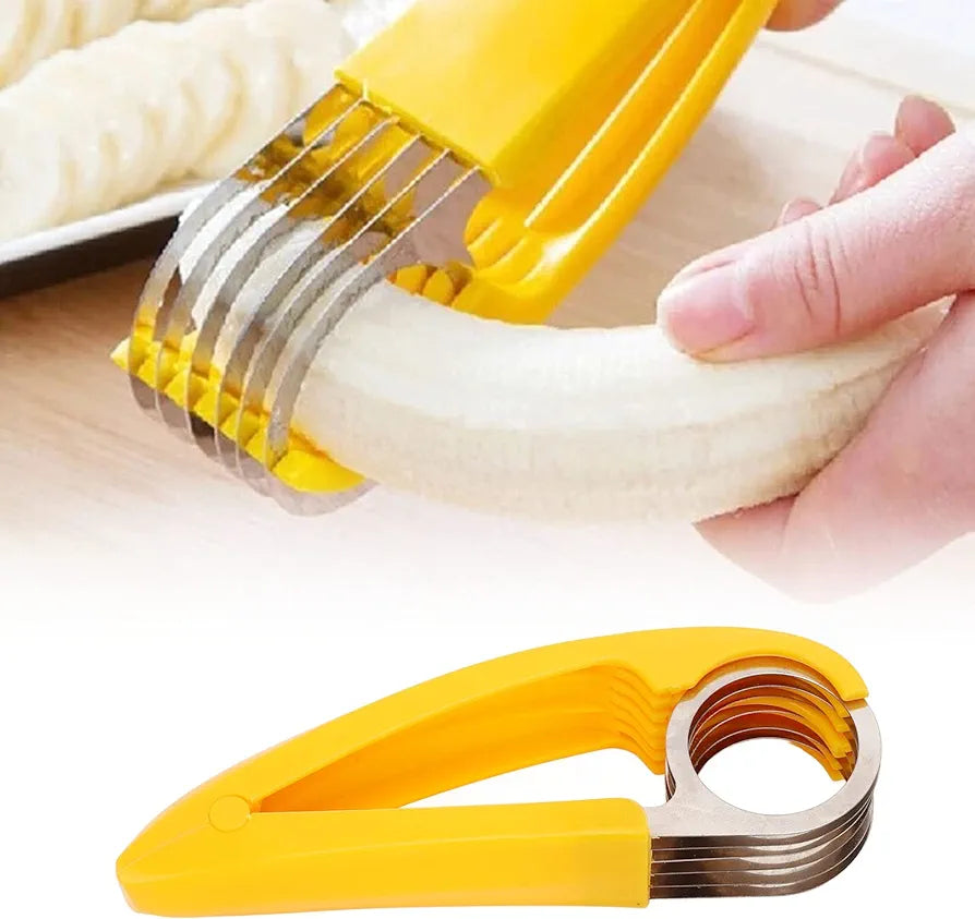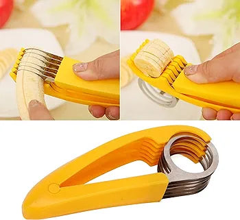 Slice bananas with ease using our Stainless Steel Slicer Banana Cutter. Made with durable stainless steel, this cutter effortlessly cuts through bananas, making it perfect for meal prep or snacking. Say goodbye to messy mush and hello to perfectly sliced bananas.