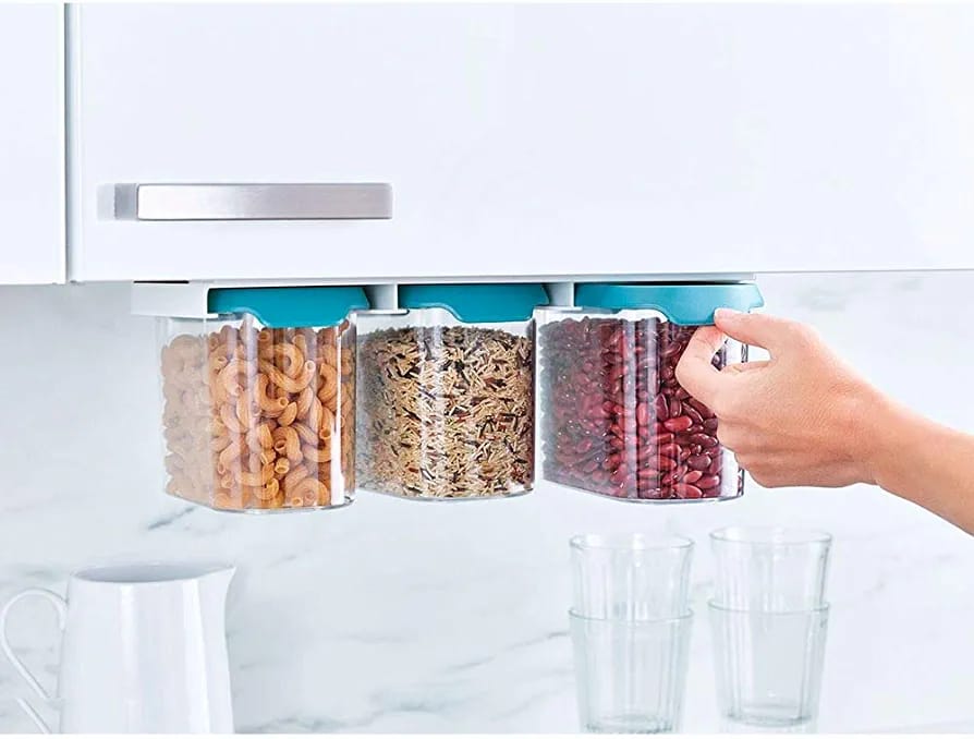 - 900ml set includes 3 x 900 ml (0.9 qt) containers plus storage rail